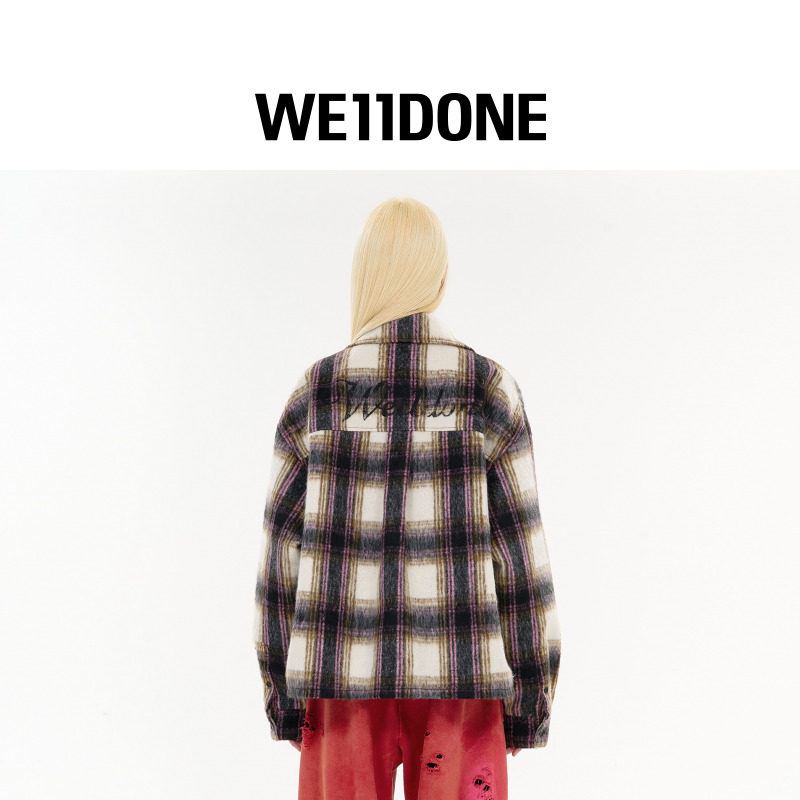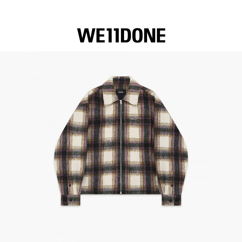【明星同款】WE11DONE25秋冬新品男女同款Logo格子衬衫夹克休闲