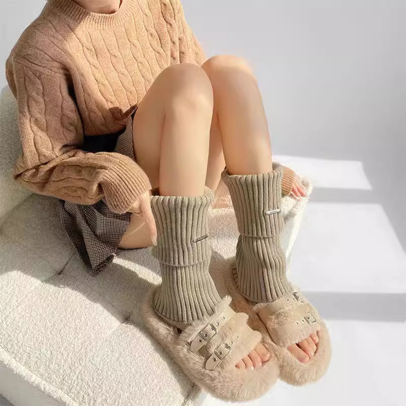 堆堆袜子女款秋冬季袜套加厚保暖中筒袜金属标小腿袜针织腿套长袜