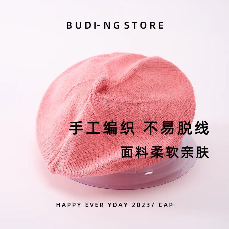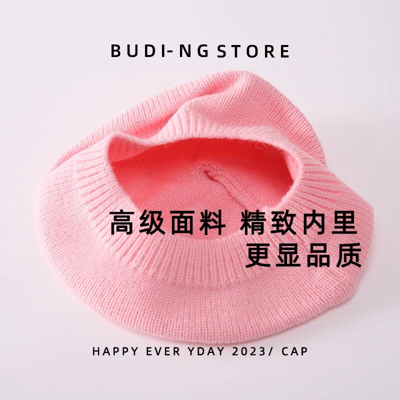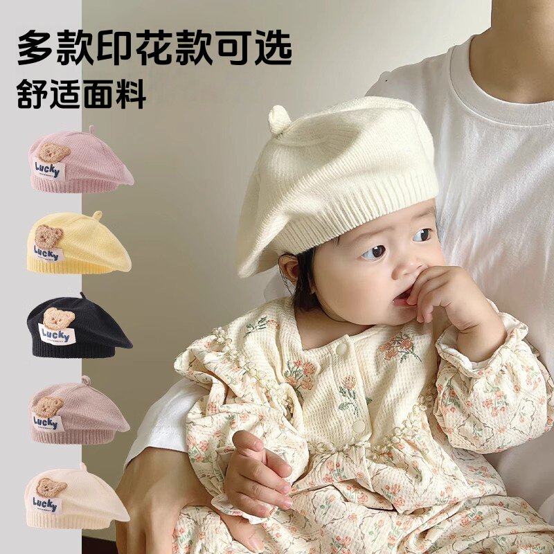 婴儿宝宝帽子春秋款贝雷帽毛线帽男女宝四季婴幼儿瓜皮帽针织红色