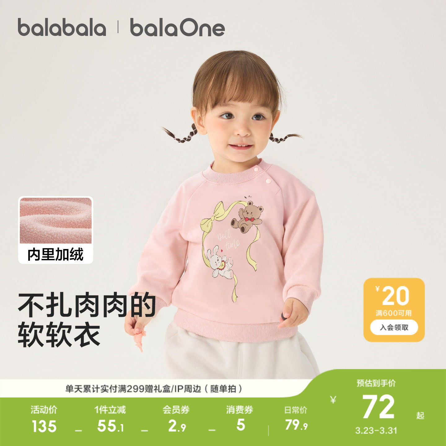 巴拉巴拉童装宝宝卫衣长袖婴儿打底衫加绒秋冬装套头休闲百搭上衣