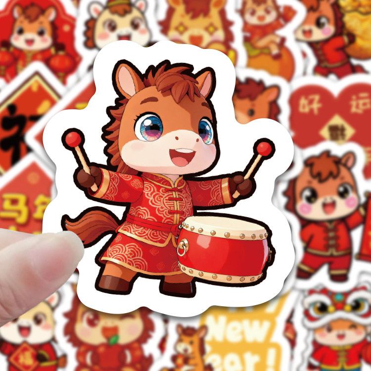 100张春节祝福装饰马年贴纸卡通创意喜庆马上大吉贴画diy笔记本