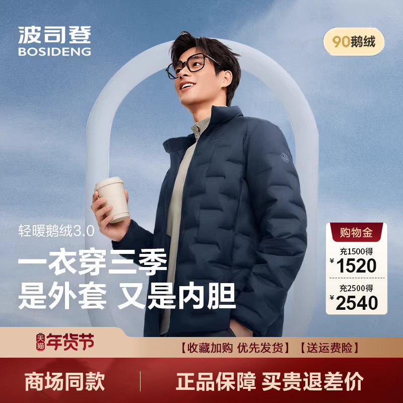 云感鹅绒|明星同款|波司登25新款轻薄立领羽绒服男士保暖外套时尚