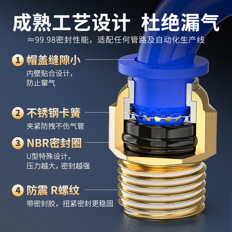 气管快速接头气动快插软管螺纹直通铜外丝公制粗牙4/6/8-M5/02/03