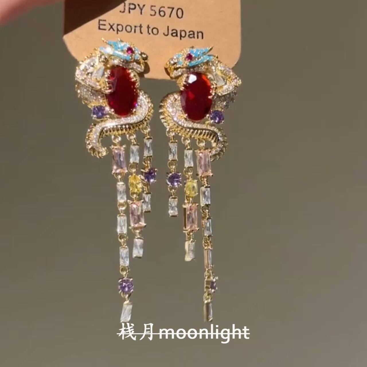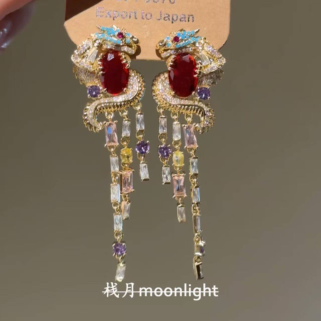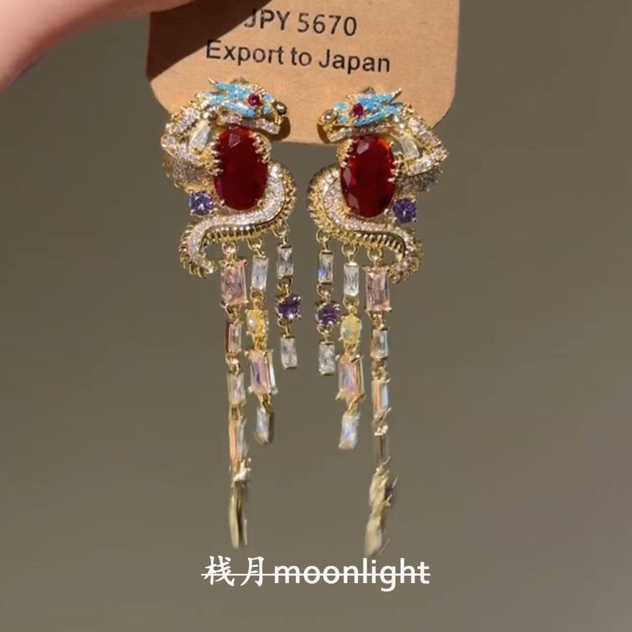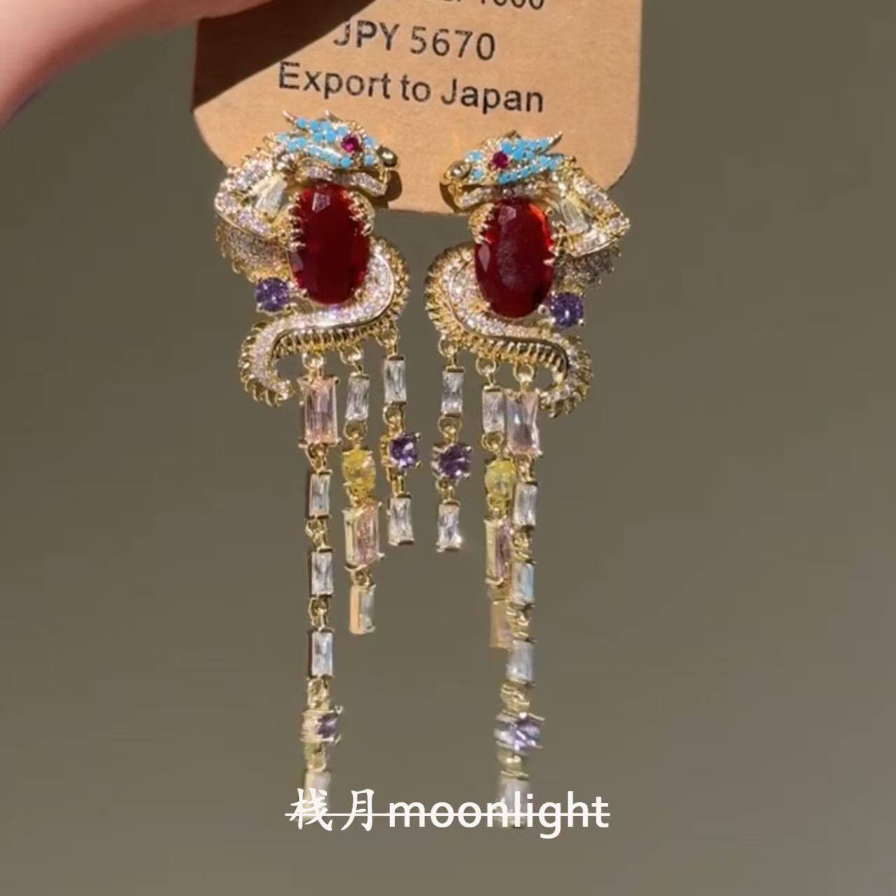 栈月原创设计流苏盘龙耳钉宫廷风轻奢新年招财气质耳饰复古蝴蝶