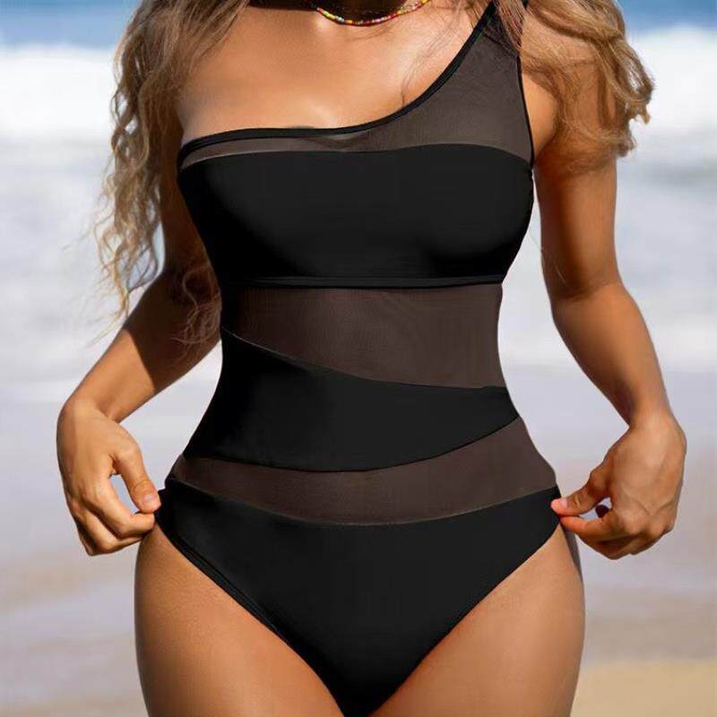 欧美跨境新款连体泳衣高级感遮肉显瘦女泳装紧身泳衣