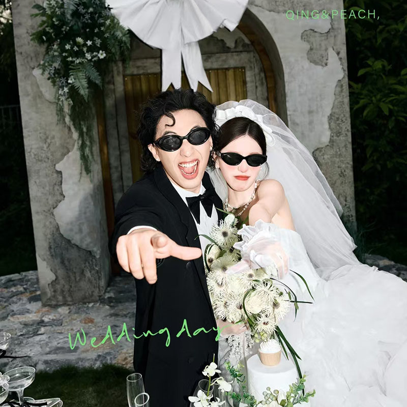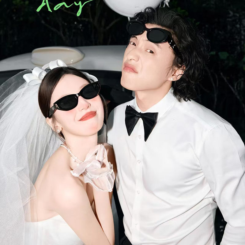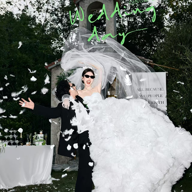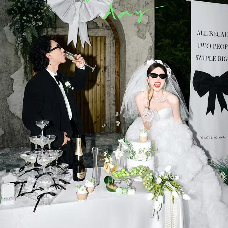结婚拍照道具领证婚礼晨袍婚纱照黑色蝴蝶结背景影楼外景拍摄道具