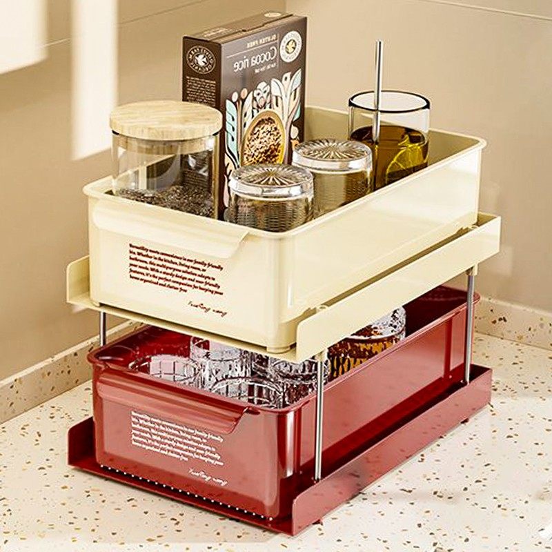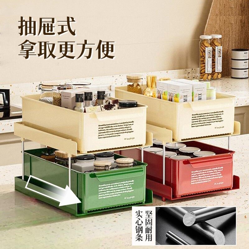 零食收纳盒桌面收纳家用抽拉式多功能抽屉带轮调料架杂物储物整理
