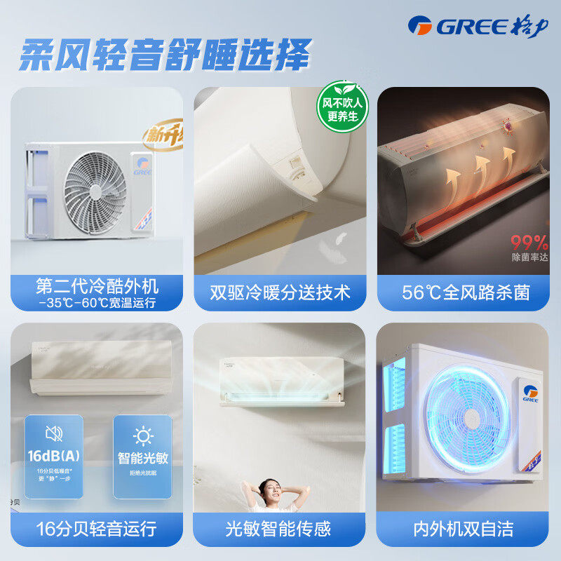 格力云之舒空调1.5匹新1级能效羽感不吹人省电智能控制防直吹卧室