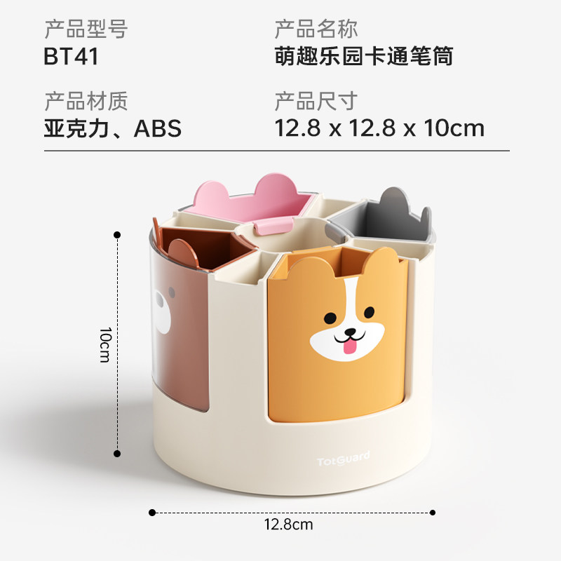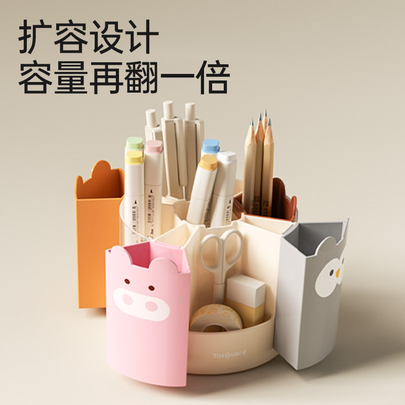 护童笔筒收纳盒旋转笔筒大容量卡通可爱笔架高颜值儿童文具收纳盒笔筒创意可爱学生可爱笔筒摆件