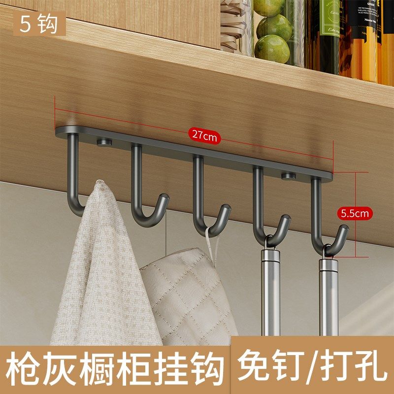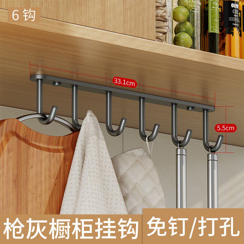 免打孔厨房挂钩架 304不锈钢橱柜隔板下吊钩架悬挂式吊顶汤勺挂架