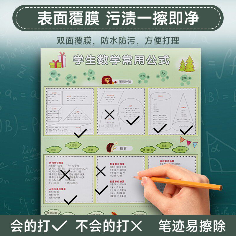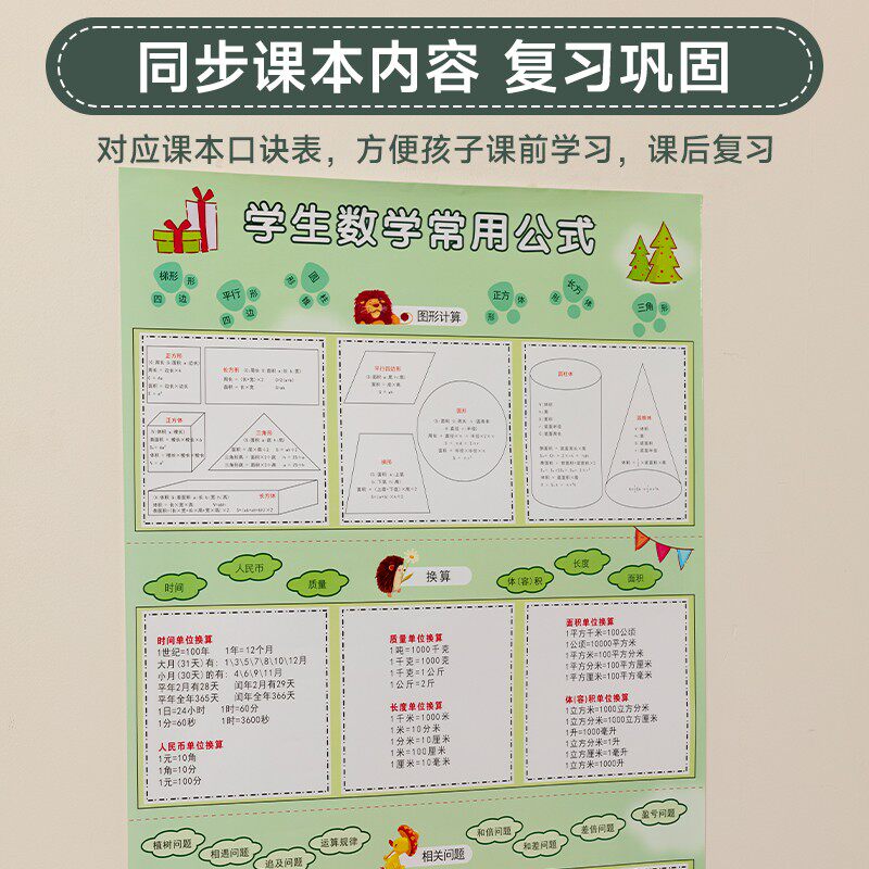 抢!【1-6年级通用】小学数学常用公式大全挂图墙贴加减乘除计算