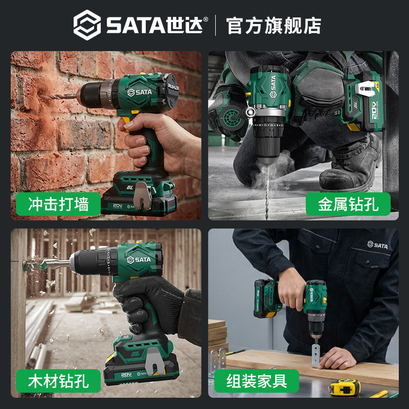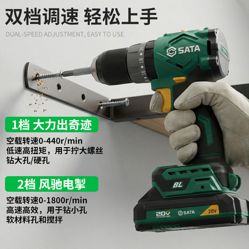 世达20V电钻冲击钻两用无刷锂电手枪钻充电手钻钻墙打孔电动工具