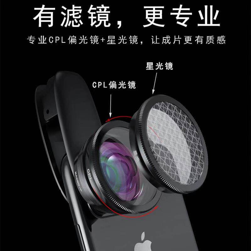 壳比手机超广角镜头专业单反微距滤镜鱼眼外前置摄像头拍照摄直播瘦脸神器适用于苹果华为平板135度广角0.5倍