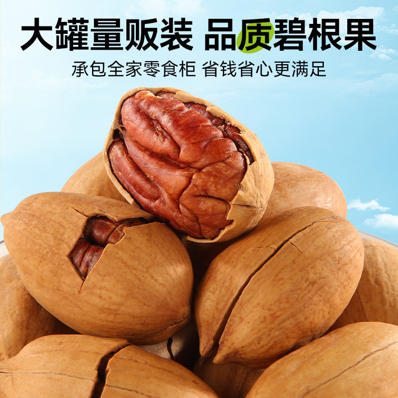 百草味碧根果500g罐装干果仁健康坚果小零食长寿果休闲奶油味炒货