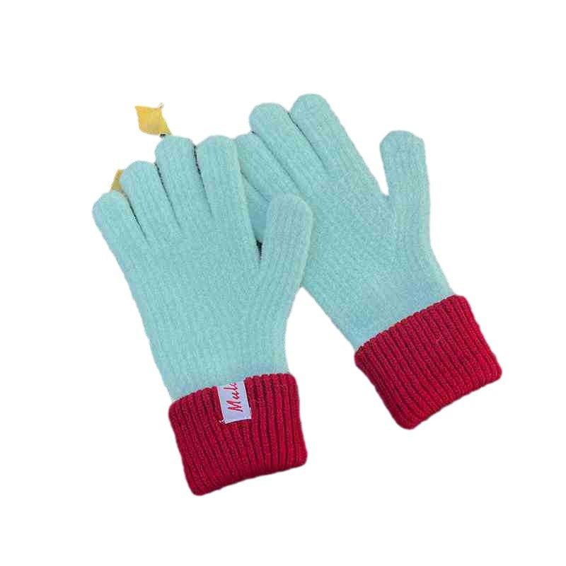 针织毛绒手套女冬季新款触屏加绒保暖加厚防寒分指毛线潮红色蓝色