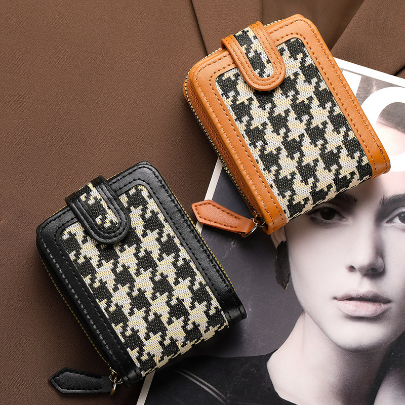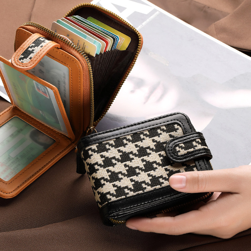 稻草人卡包女士新款证件女式牛皮小巧真皮拉链钱夹小众银行卡钱包