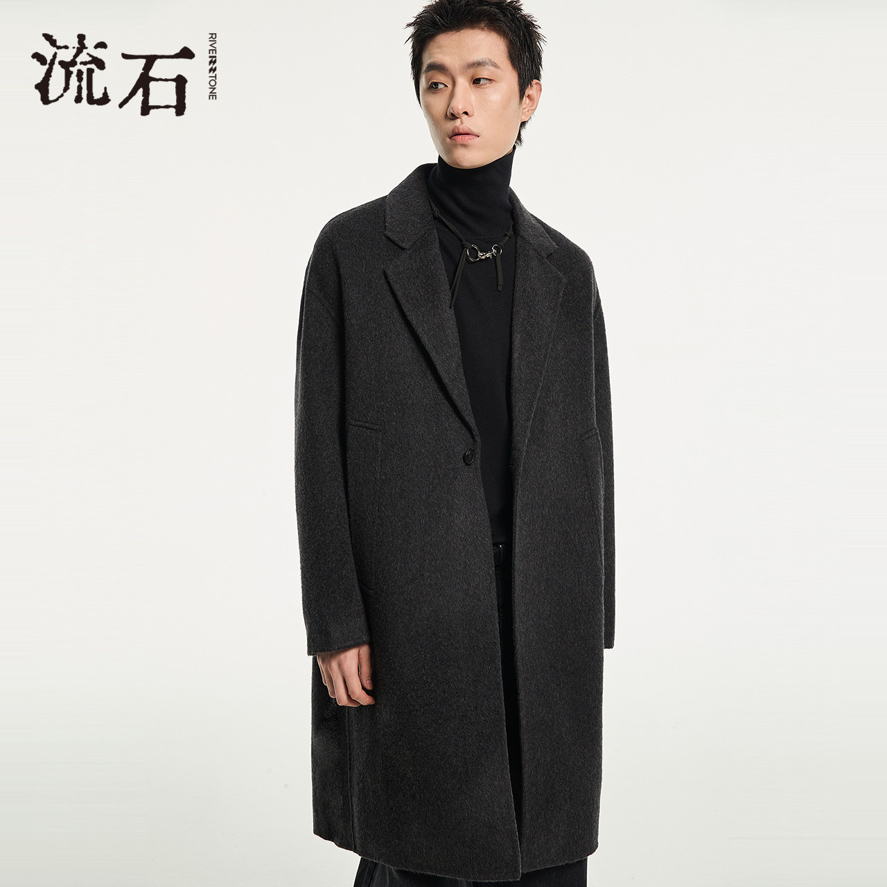 流石男时尚中长款羊毛双面呢大衣2025年冬季新款男士宽松呢子外套