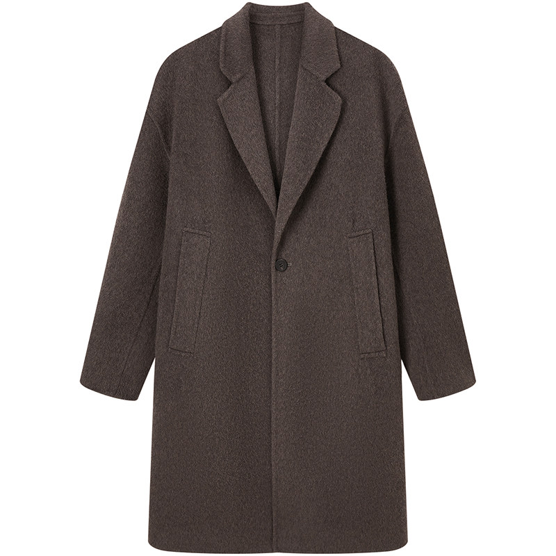 纯羊毛双面呢大衣男士 中长款过膝双面羊绒外套 西装领毛呢子风衣