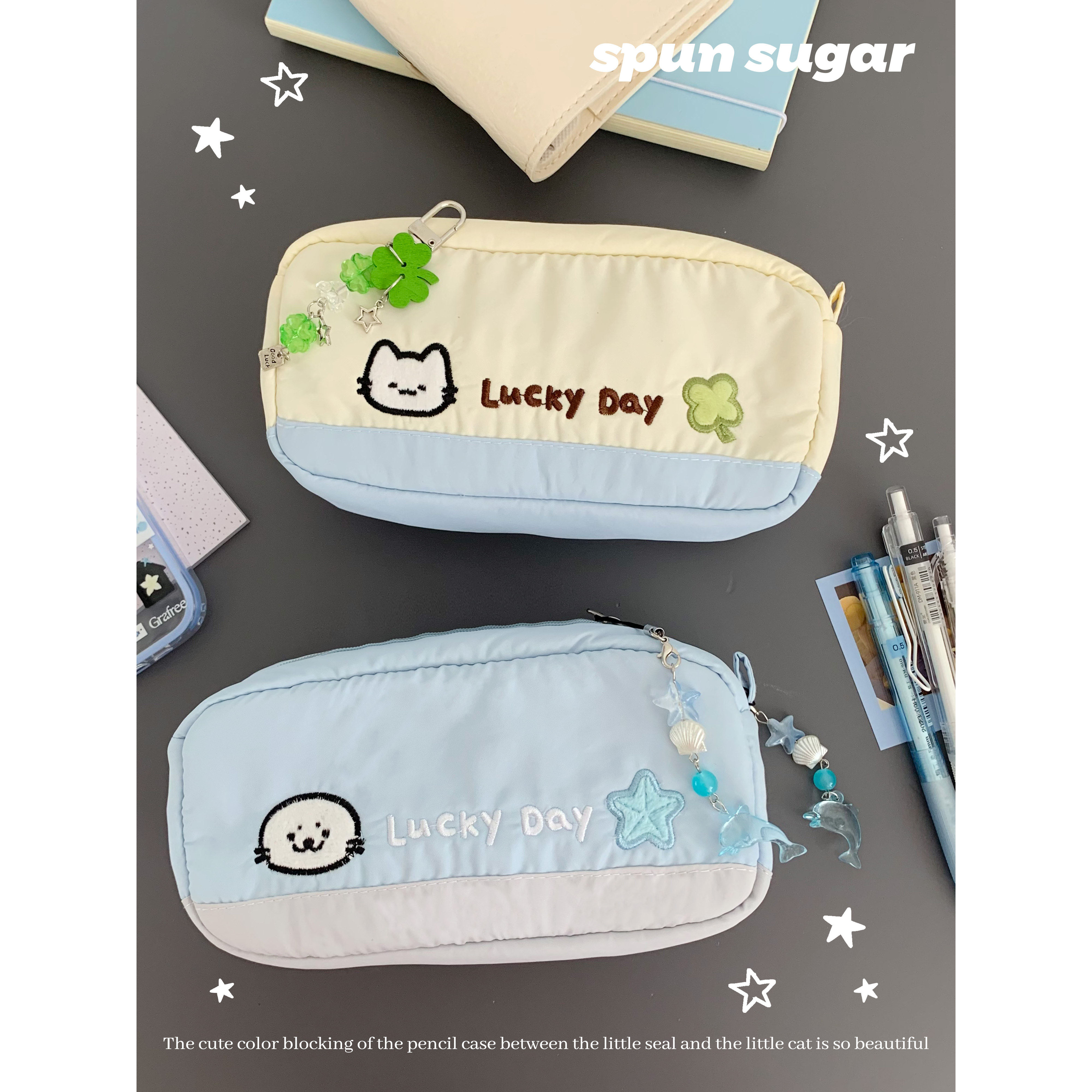 棉花加点糖原创海豹四叶草笔袋可爱文具盒学生收纳大容量文具袋