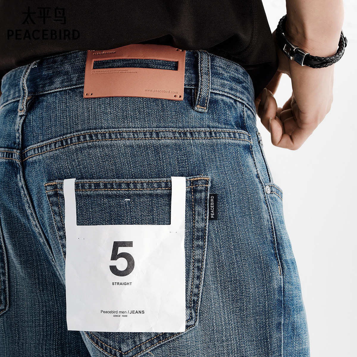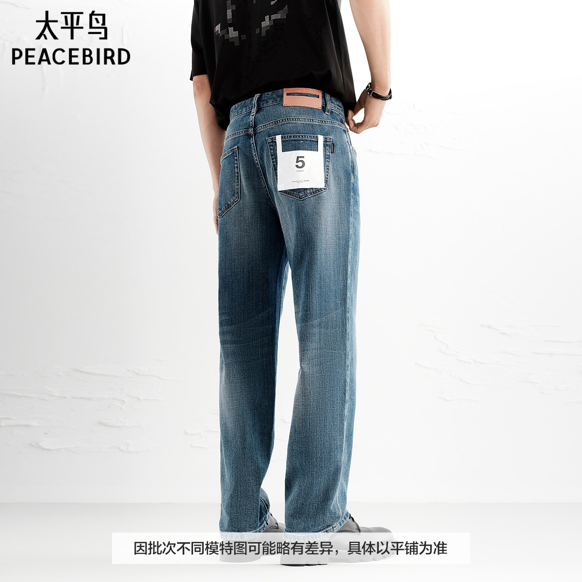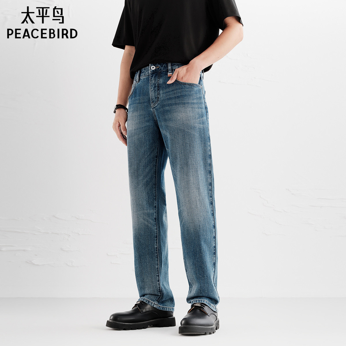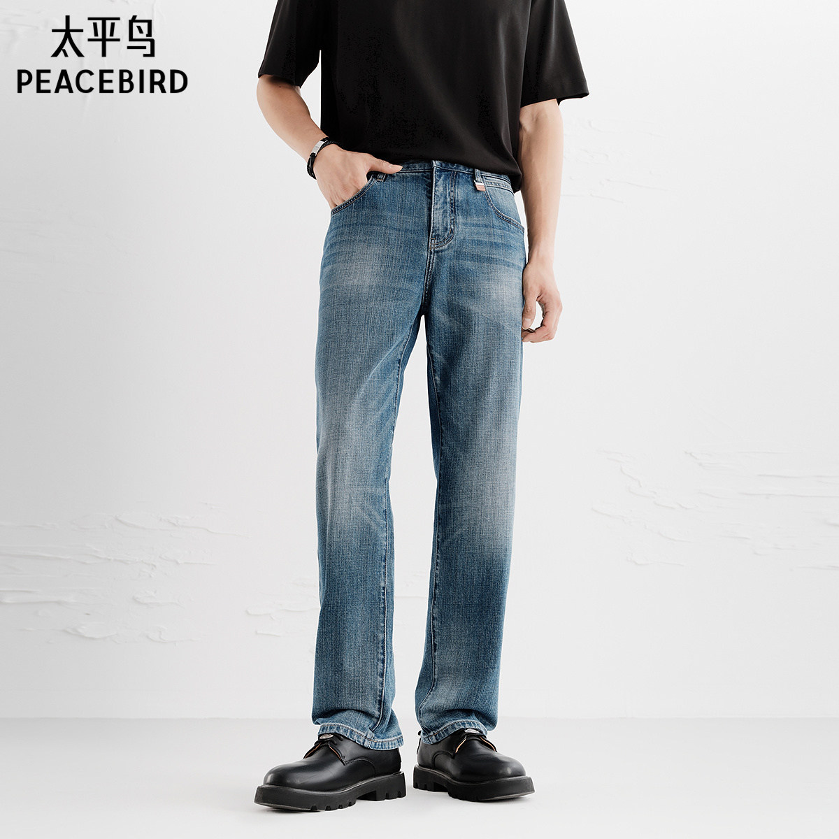 太平鸟男装 美式复古潮流蓝色直筒牛仔裤男水洗时尚休闲长裤男