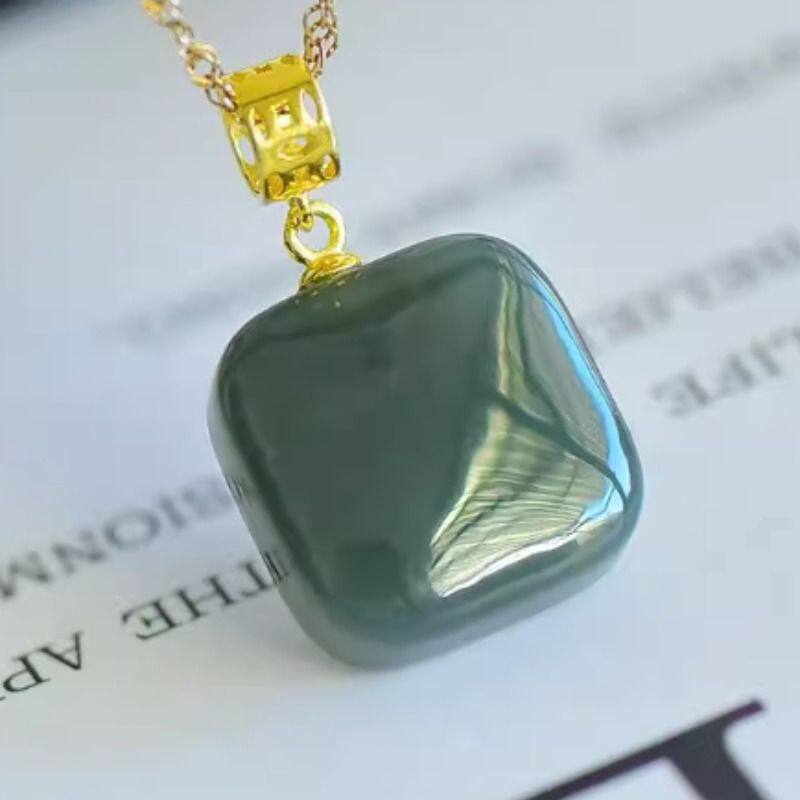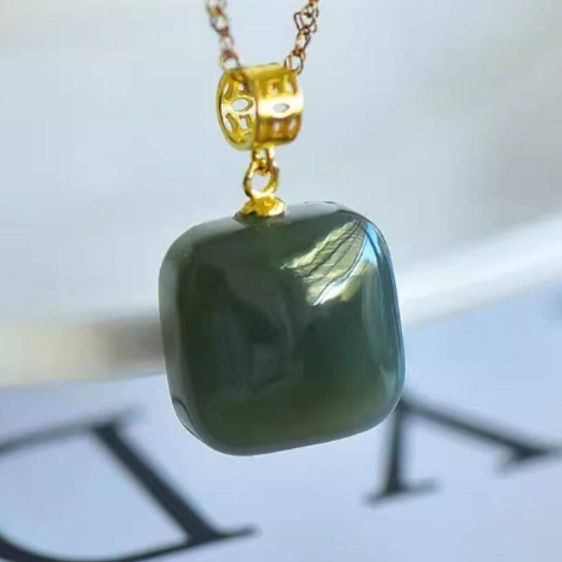 新疆和田玉吊坠无事牌青玉方糖女锁骨链简约轻奢送女友925项链