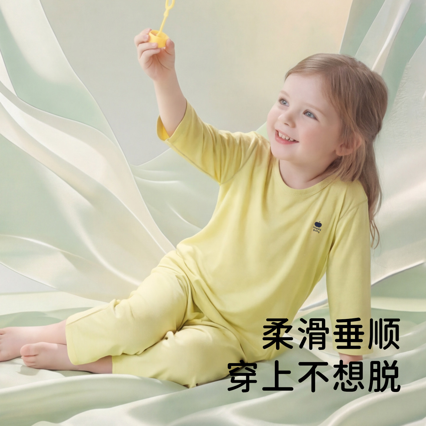 婧麒宝宝莫代尔套装夏季薄款男女童短袖家居服冰丝睡衣夏天衣服