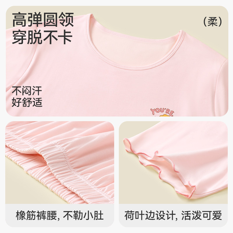 久岁伴女童睡衣莫代尔夏季薄款少女女士家居服大童冰丝透气三件套