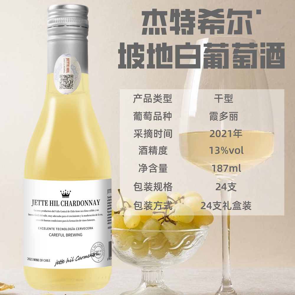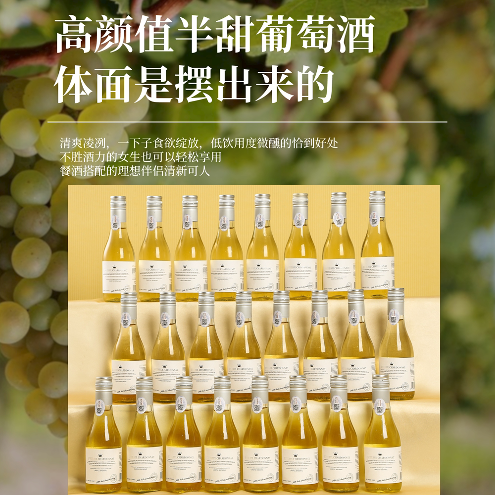 智利小瓶半甜白葡萄酒女士低度数红酒微醺13度晚安小酒24瓶整箱装
