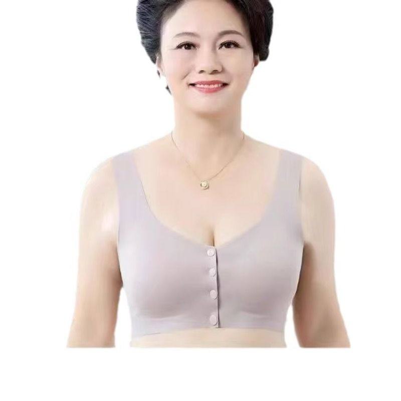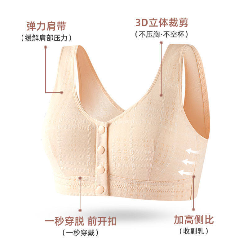中年棉妈妈内衣背心式前扣文胸无钢圈莫代尔妇女大码夏季薄款胸罩