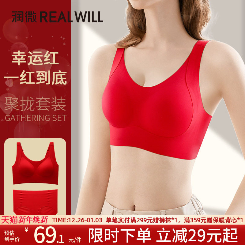 润微大胸调整型收副乳本命年红色内衣礼盒大码提拉上托防下垂文胸