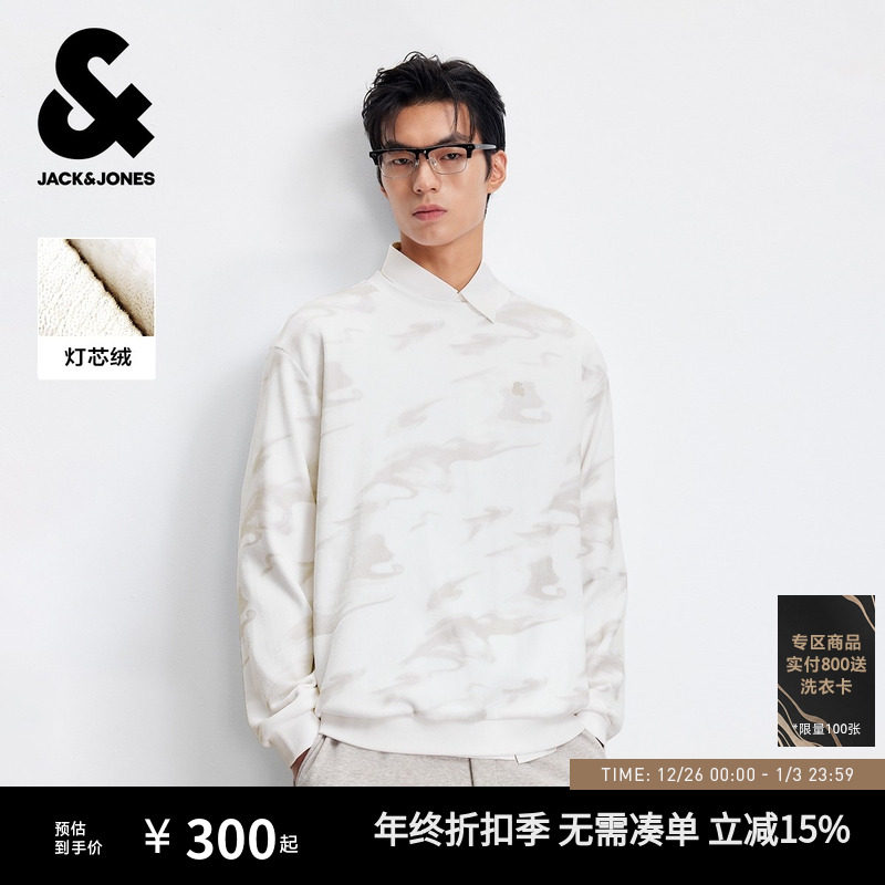 【灯芯绒】杰克琼斯男装秋季新款水墨渐变卫衣刺绣外套宽松上衣男
