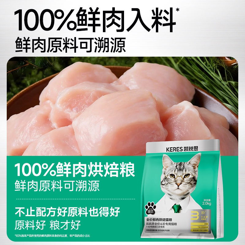 凯锐思银爪烘焙分阶成猫粮鱼油美毛靓毛80%鱼油全价营养成猫猫粮