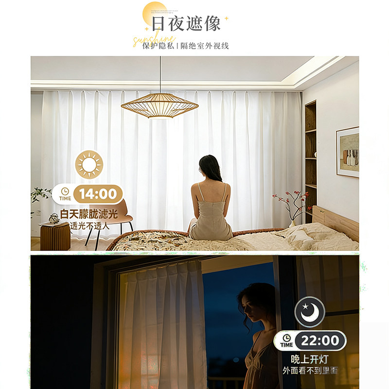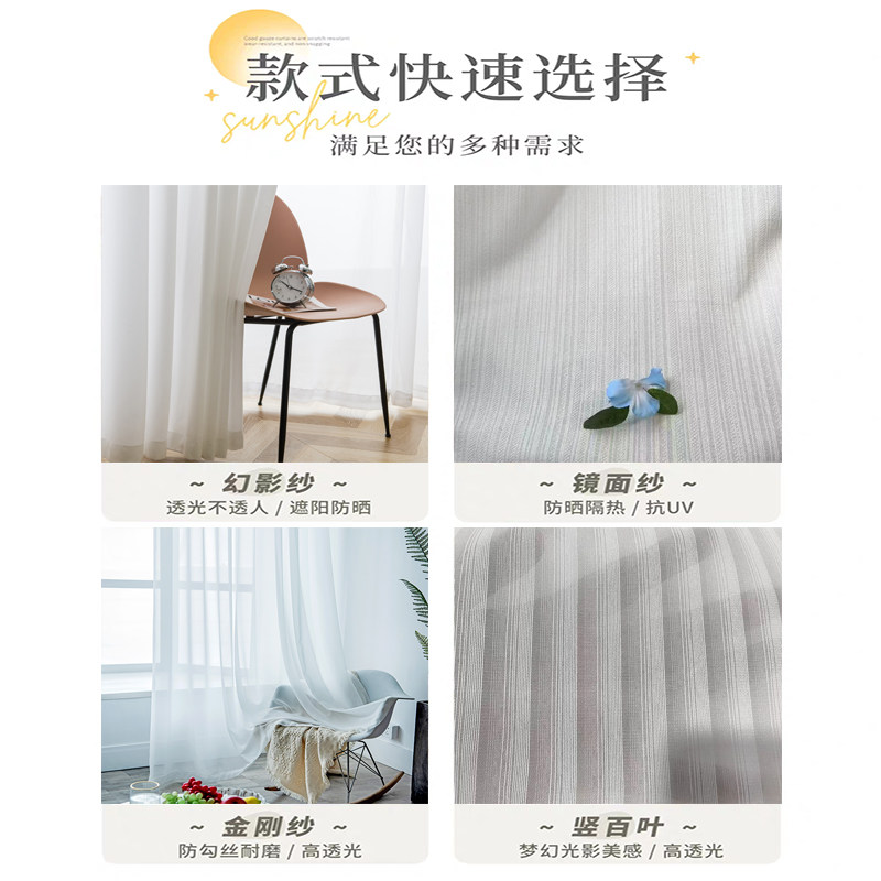 幻影纱窗帘纱帘透光不透人遮阳防晒客厅阳台飘窗遮光新款窗纱白纱