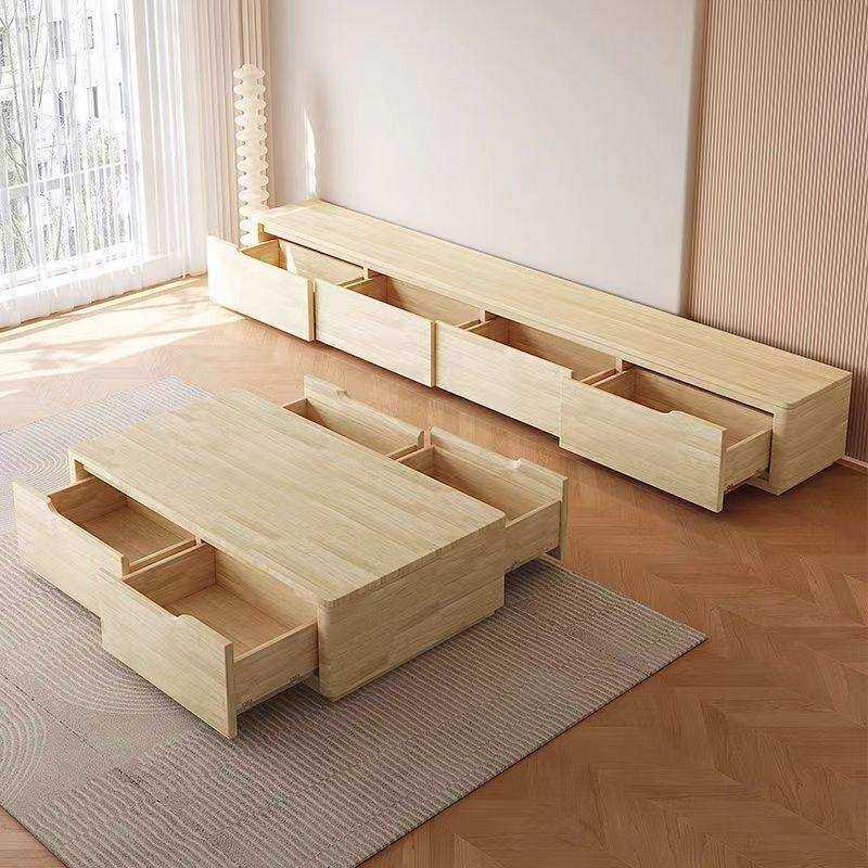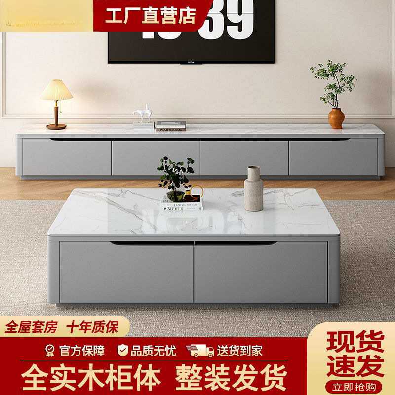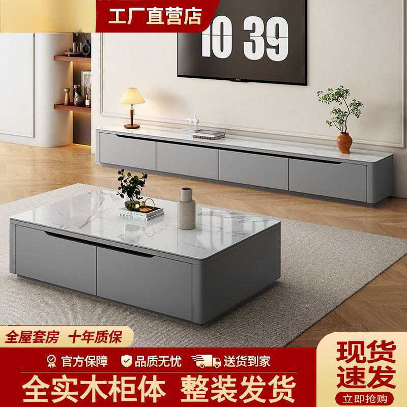 全实木岩板茶几电视柜组合现代简约小户型落地储物茶几整装地柜
