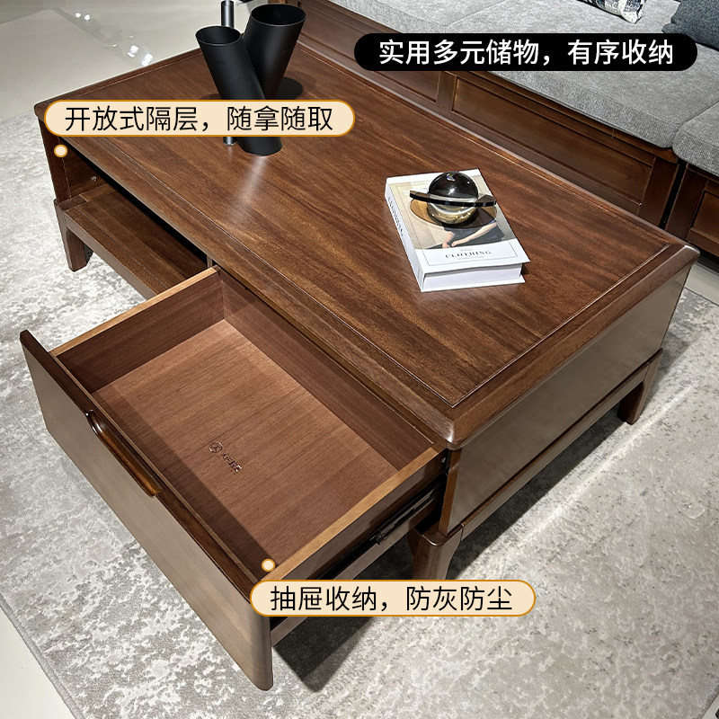 全实木茶几小户型客厅家用茶台现代简约2025新款高档胡桃木茶桌