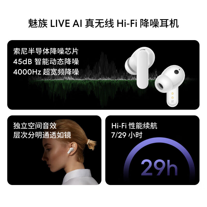 魅族LIVE AI真无线主动降噪蓝无线牙耳机音乐入耳式21跑步游戏20