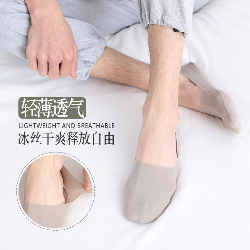 冰丝船袜男防滑不掉跟夏季薄款袜子男浅口隐形无痕纯棉底短袜防臭