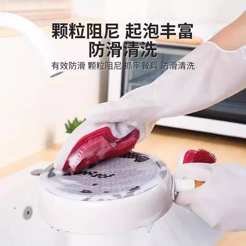 加长款硅胶洗碗手套女家务厨房耐用防水洗衣洗菜刷碗清洁神器
