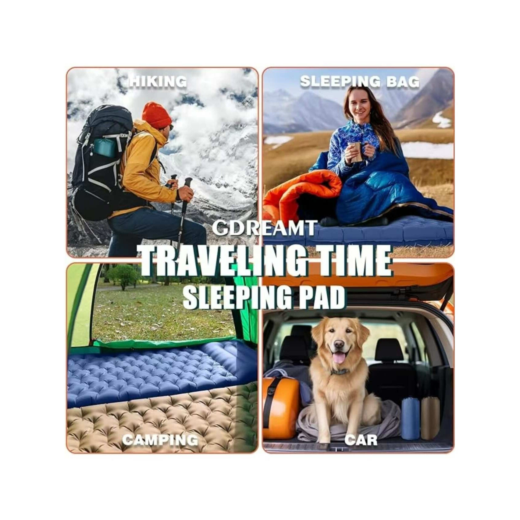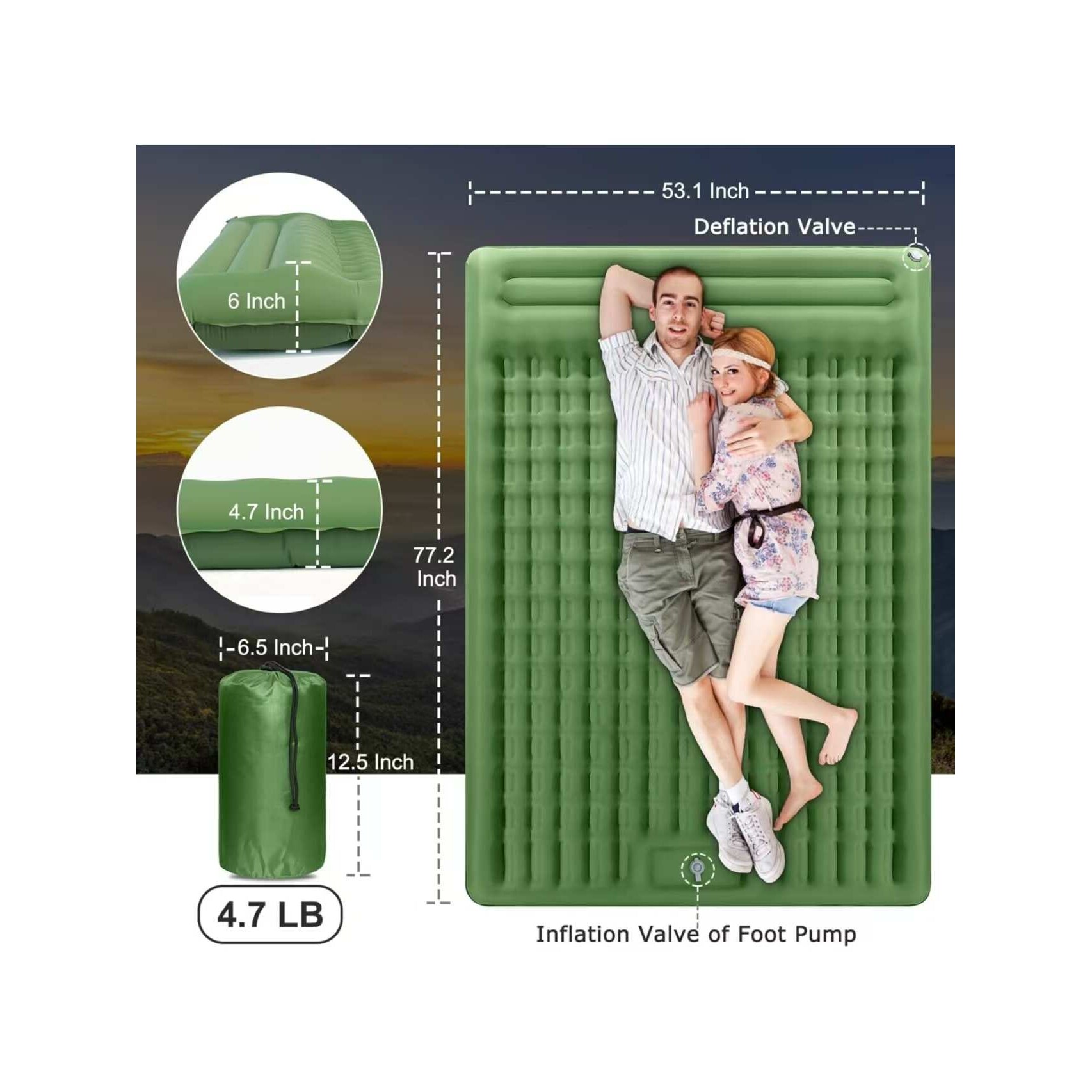 户外露营双人充气床充气垫打地铺 拉带双人露营睡垫 内置泵脚踏充