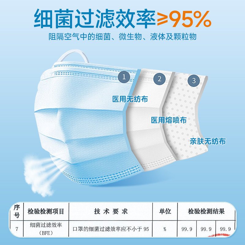 100只医用外科口罩一次性医疗三层官方正品旗舰店灭菌级独立包装