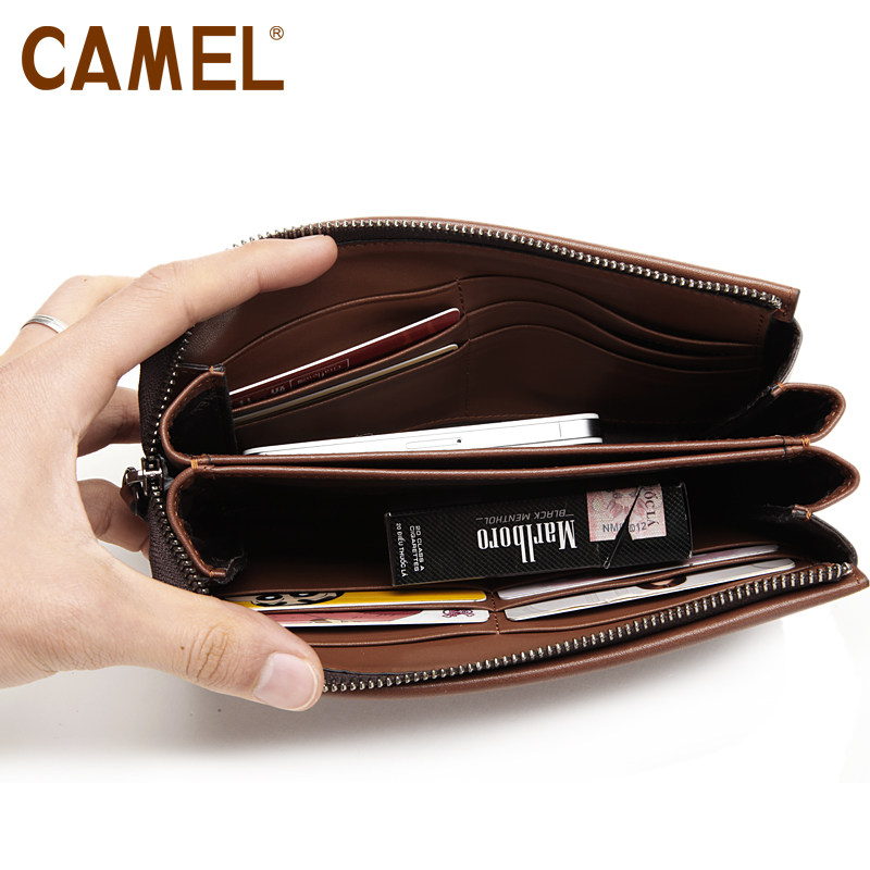 【非卖品】camel骆驼 纯色牛皮手拿包 欧美时尚手拿包包 横款方