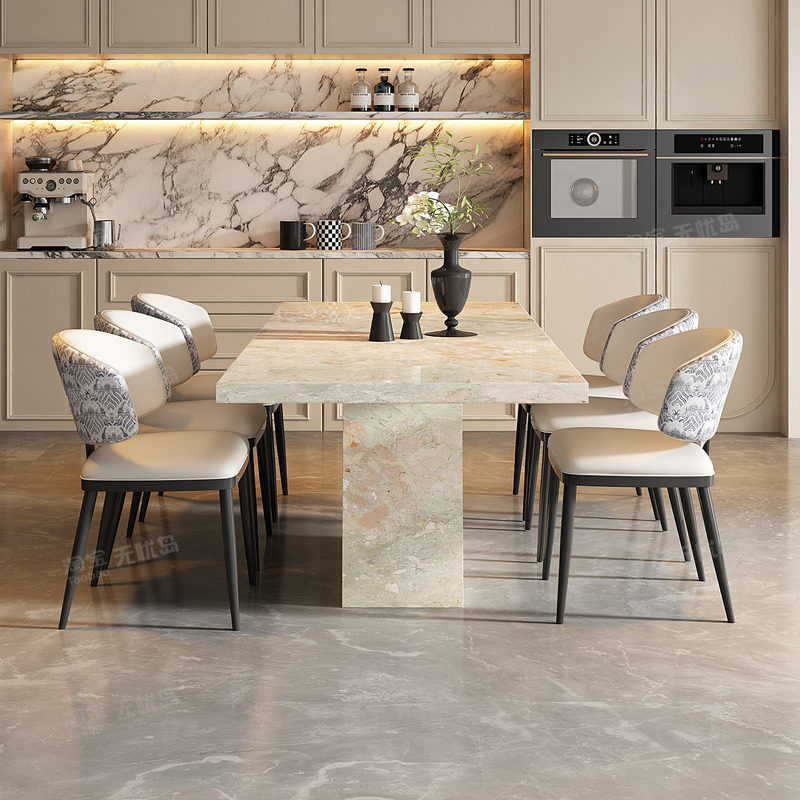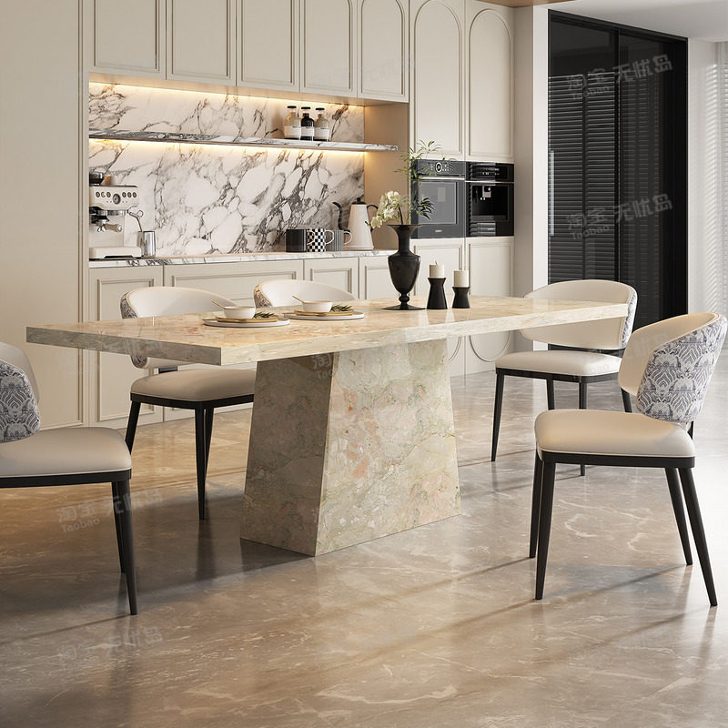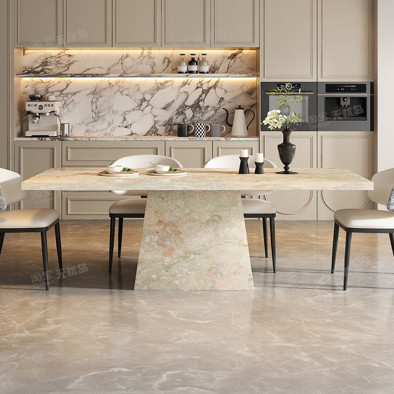 意式极简长方形莫奈花园岩板餐桌2026新款岛台桌开放式高级感饭桌
