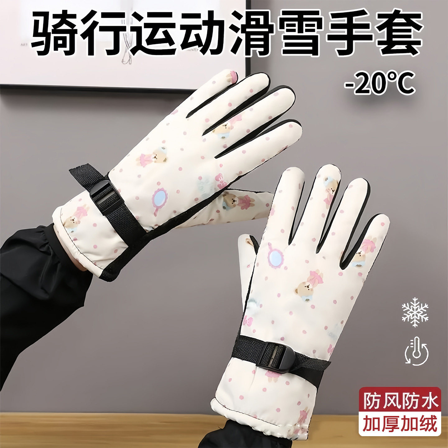 滑雪手套女冬季保暖防寒户外骑车加绒加厚防风防水触屏学生男冬天