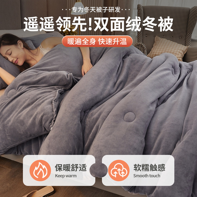 被子牛奶绒冬季棉被双面10斤冬被法兰绒加厚保暖冬天大豆纤维被芯
