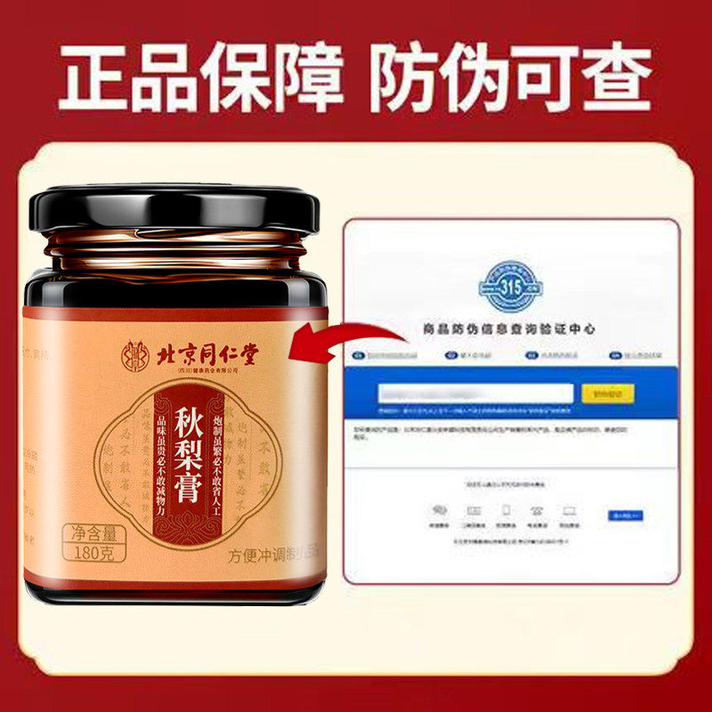 北京同仁堂秋梨膏老牌子蜂蜜无痰肺儿童罗汉果枇杷膏兴安科技保健