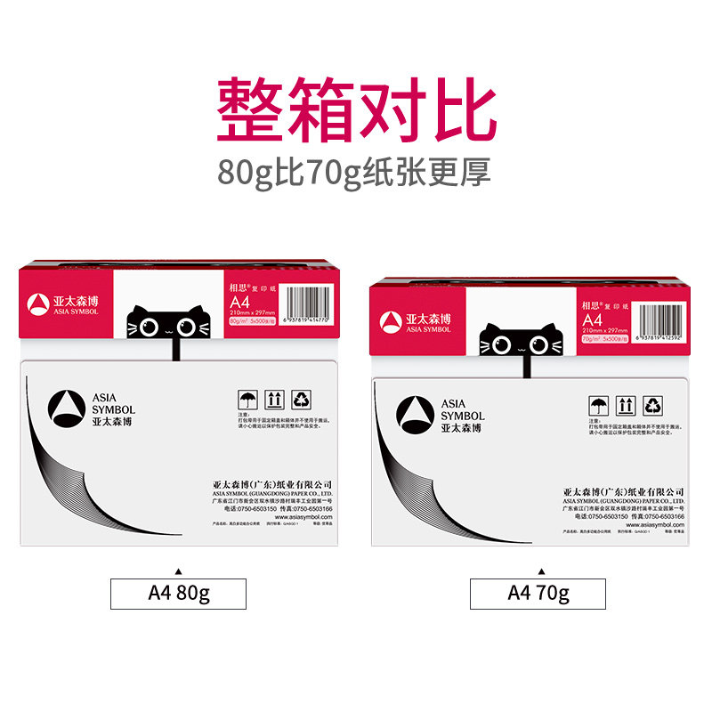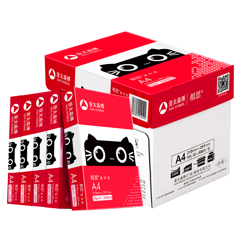 亚太森博相思a4打印纸70g复印纸80g双面打印白纸画画办公用纸草稿纸单包500张整箱5包2500张正品包邮