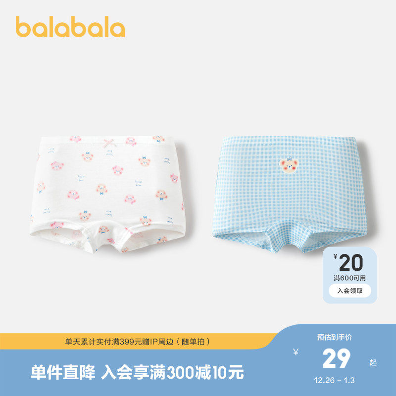 巴拉巴拉女童内裤平角儿童短裤小童甜美莫代尔两条装舒适柔软萌趣