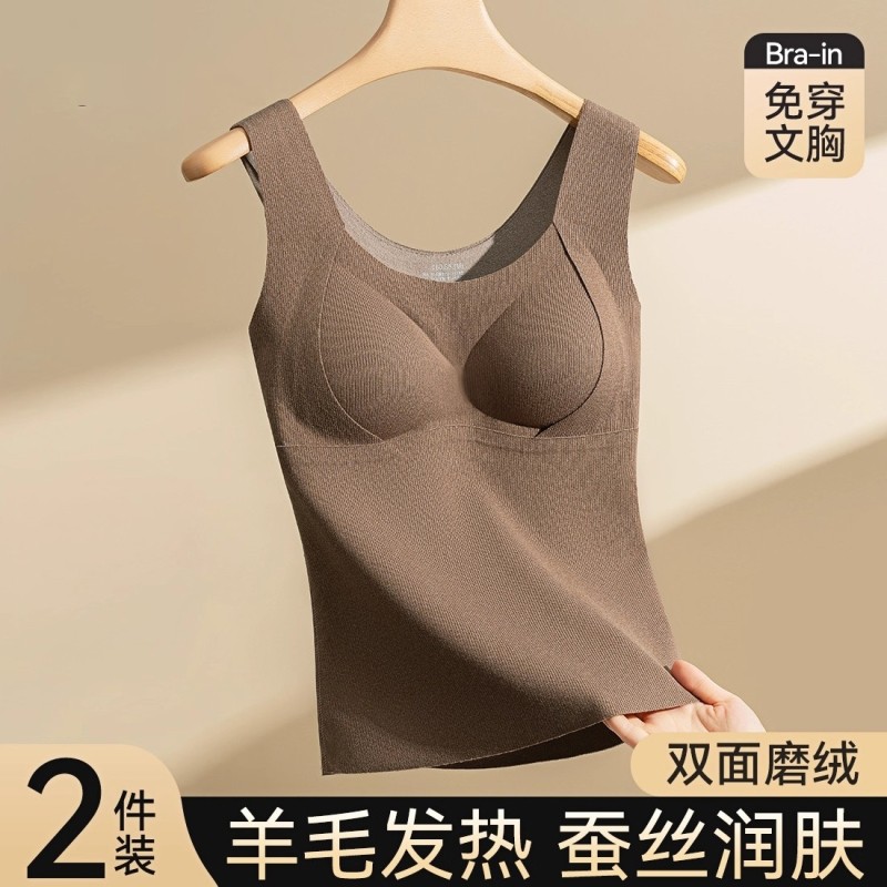 保暖背心女羊绒蚕丝带胸垫吊带2025秋冬发热无痕自一体免穿内衣