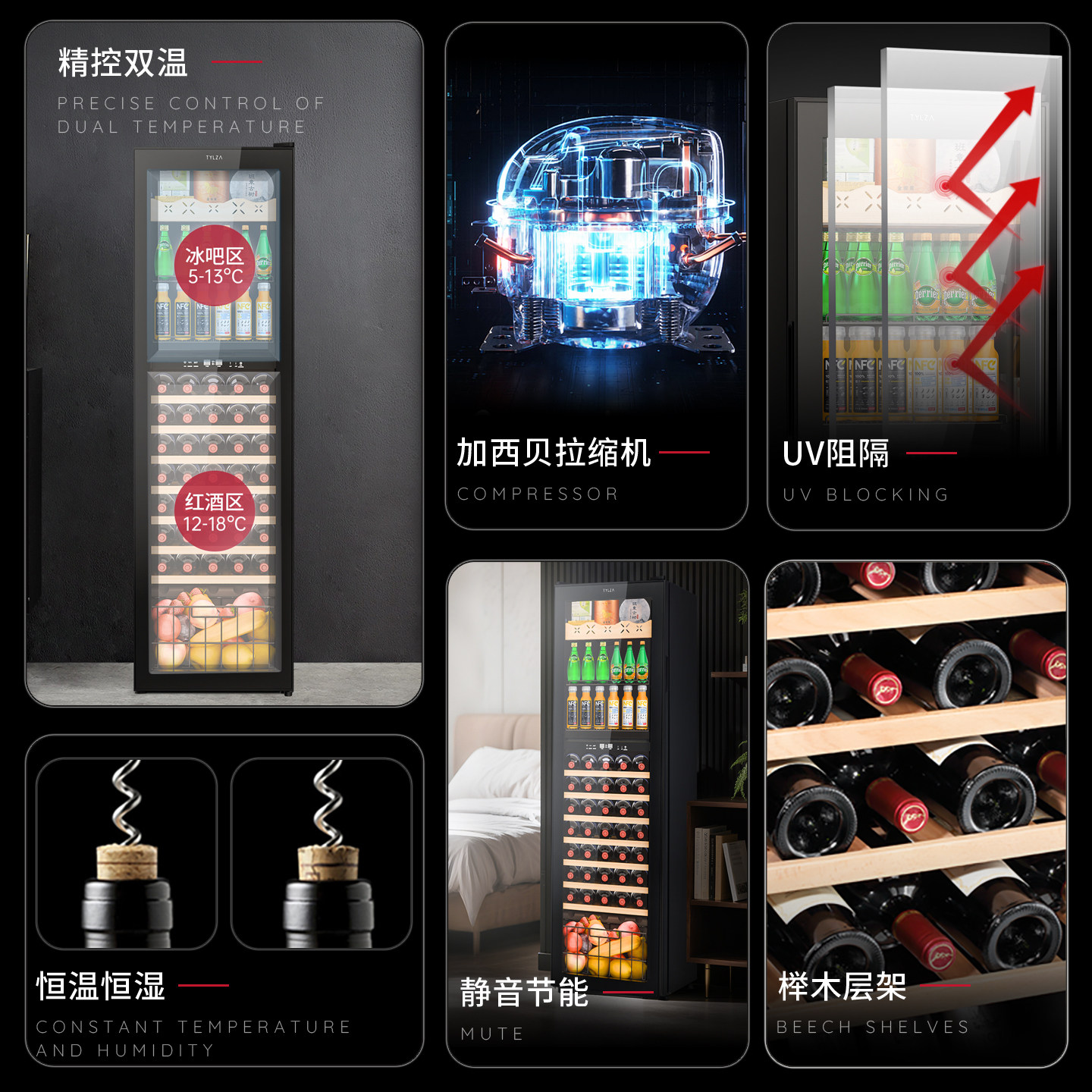 TYLZA恒温红酒柜家用客厅冷藏保鲜风冷无霜双温冰吧茶叶柜TW208