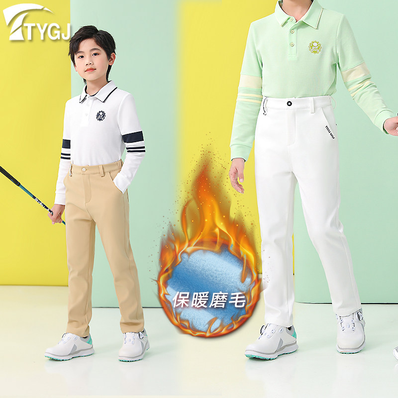 高尔夫儿童男童加绒磨毛长裤子保暖弹力松紧腰中大童学生运动球裤